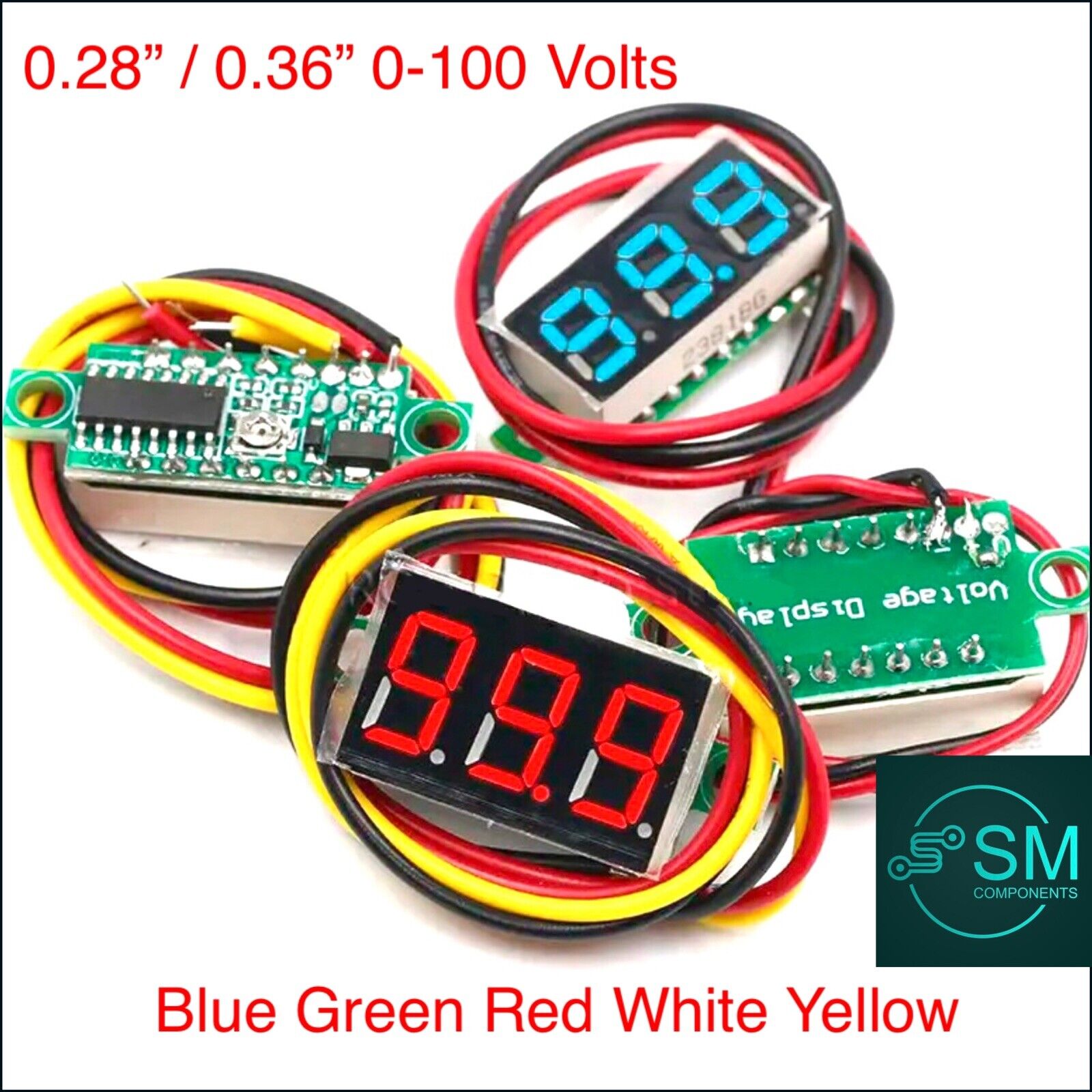 Both voltmeters are small, 0.28" or  0.36", with ranges DC DC0-100V, 3-wire generic products. These are the latest design and can work directly on 5V, 9V, 12V, 24V and other circuits, without regulation. With three wiring, easy access to car / battery car / motorcycle car line, with reverse polarity protection function, line reversed not burn. Used to monitor battery voltage, grasp the battery voltage state, it can also be used for other products voltage measurement applications.