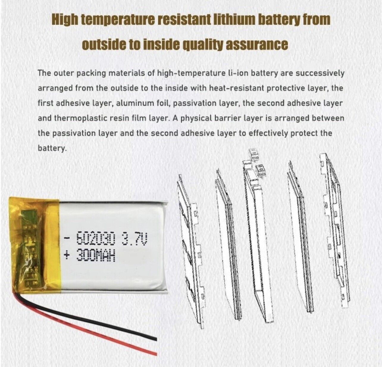 602030 3.7V 300mA Lithium Polymer Rechargeable Battery For MP3 DVD GPS LED Light Bluetooth Speaker Lipo Li-ion Battery