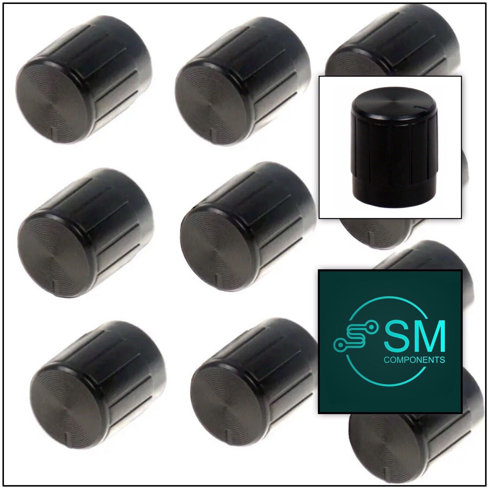 10pcs Black Rotary Knobs for 6mm Diameter Knurled Potentiometer shaft. Condition is "Brand New". Sent with Australia Post regular letter. No tracking