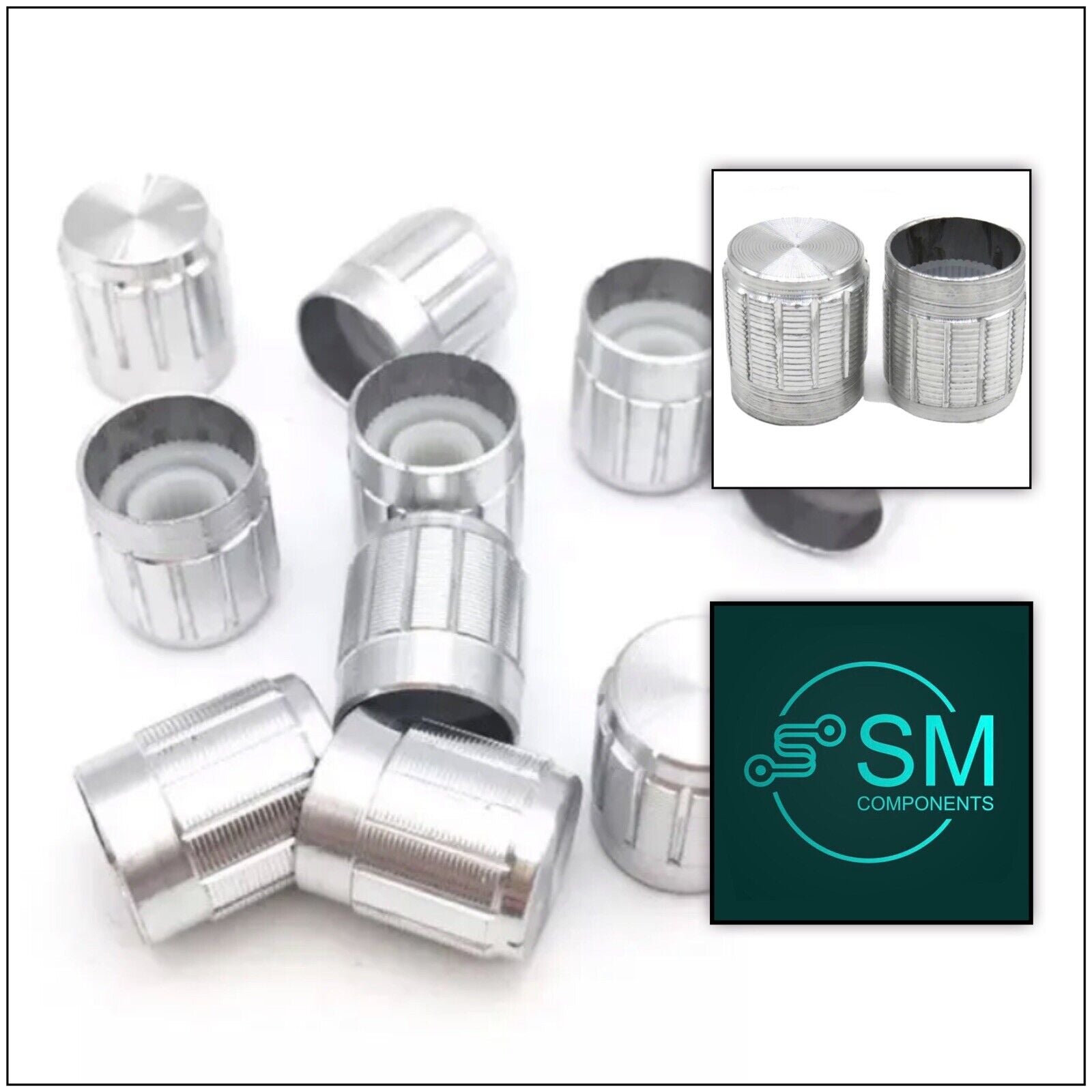 10pcs Silver Rotary Knobs for 6mm Diameter Knurled Potentiometer shaft. Condition is "Brand New". Sent with Australia Post regular letter. No tracking