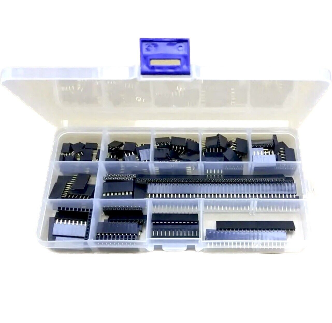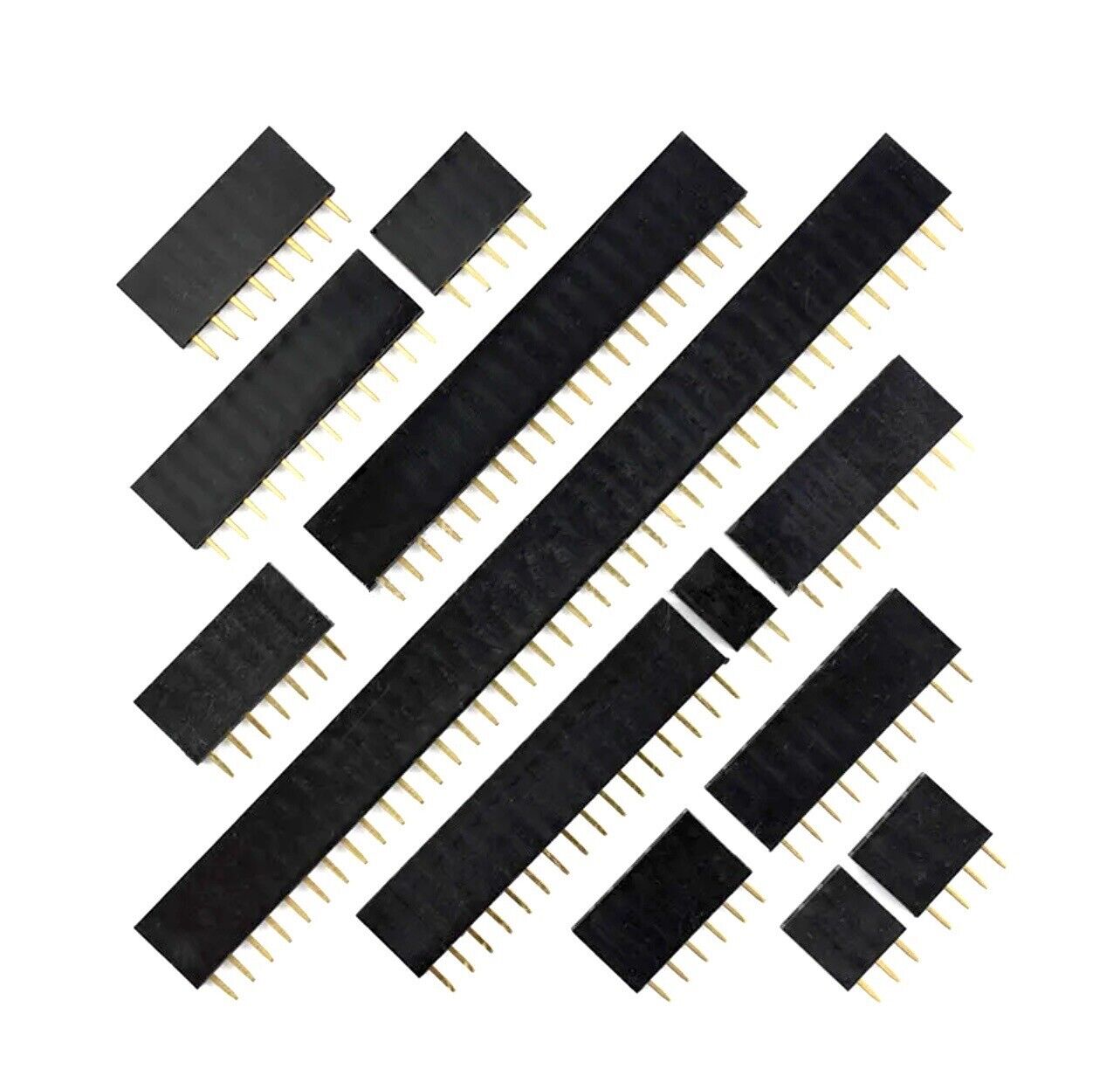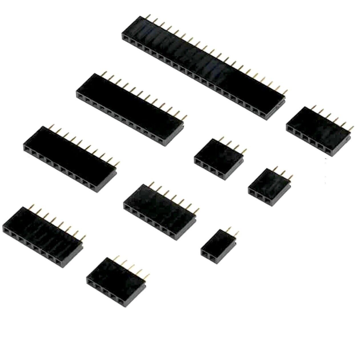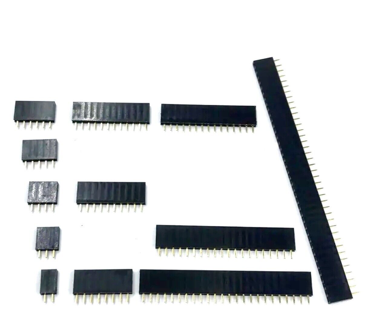 144 Pieces 2.54mm (1/10”) Female Single Row Pin Header 2 Pin, 3 Pin, 4 Pin, 5 Pin, 6 Pin, 8 Pin, 10 Pin, 12 Pin, 15 Pin, 18 Pin, 20 Pin, 25 Pin, 40 Pin.