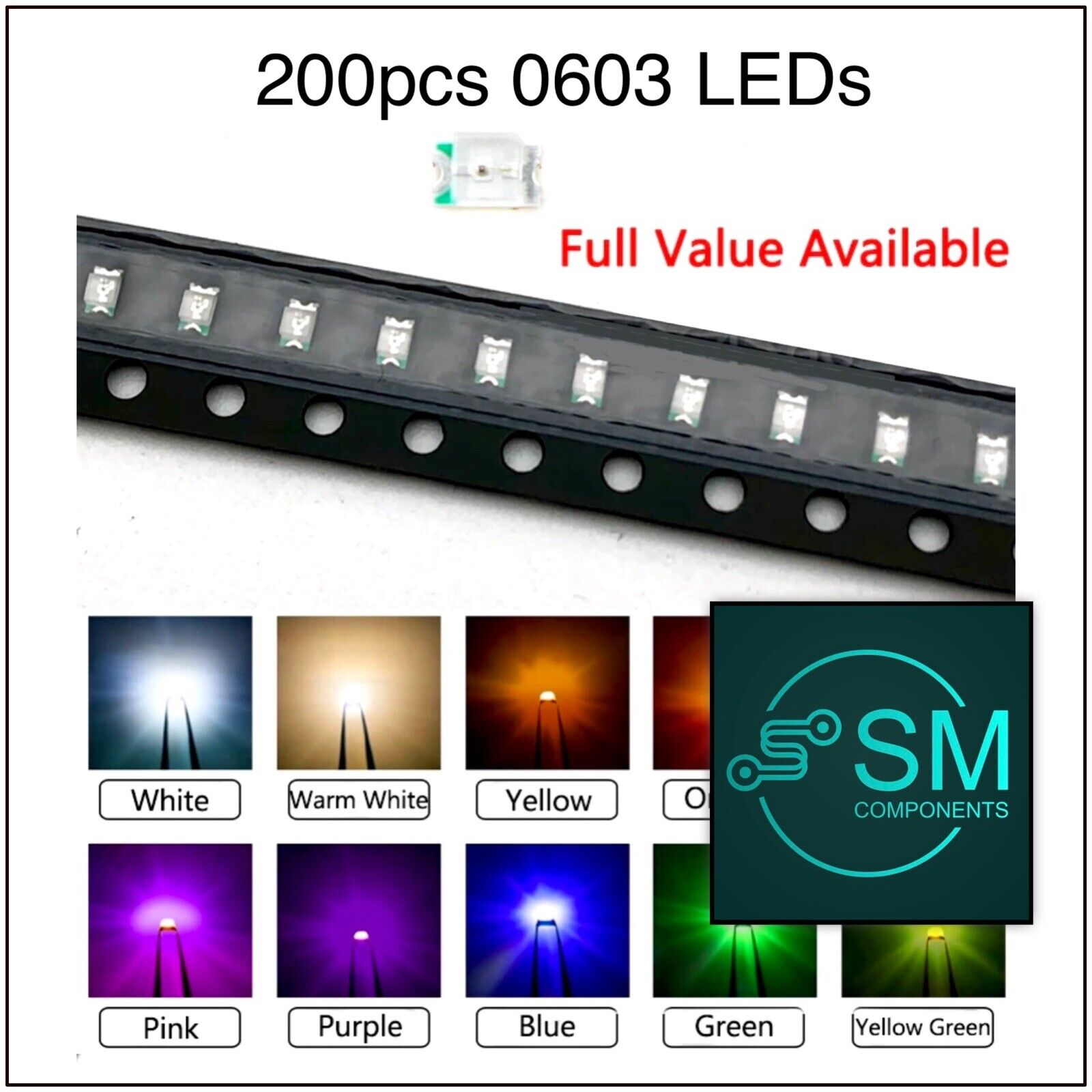 200 pieces 0603 SMD All Colours LED Lighting Electronics Components Light Emitting Diodes. Condition is Brand New. Sent with Australia Post Regular Letter no tracking number included.