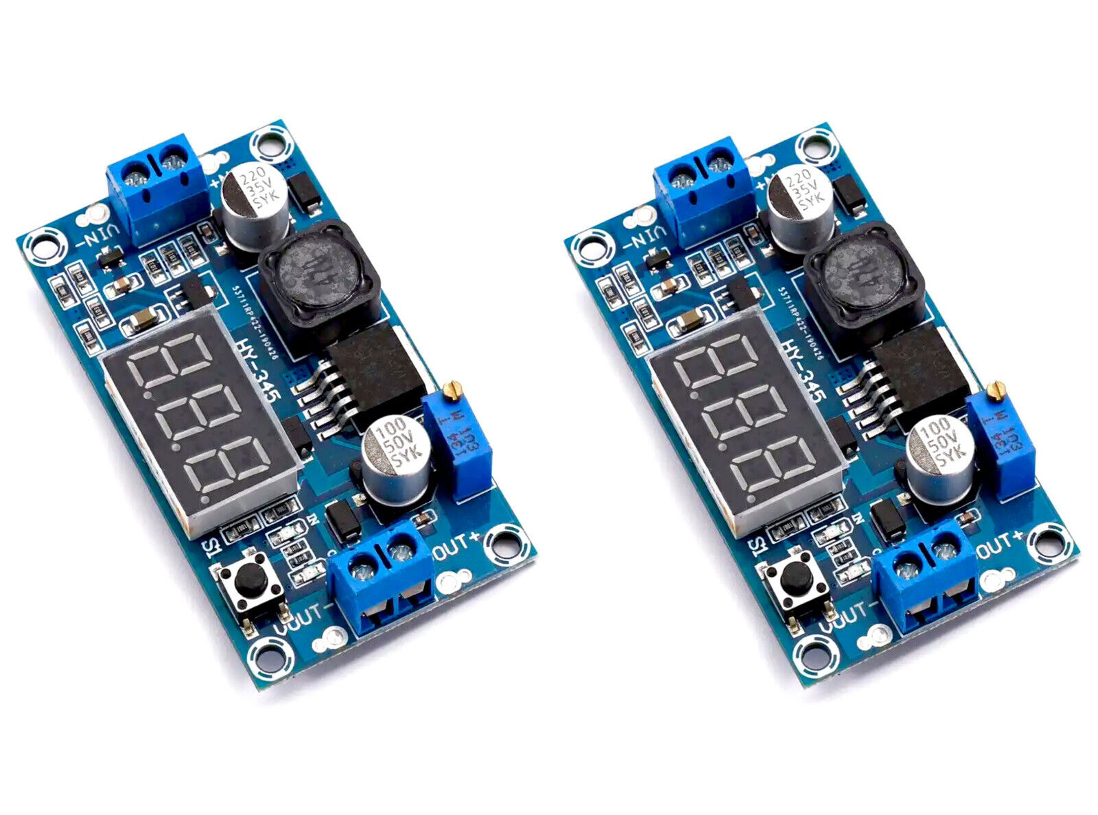 2PCS - XL6009 DC-DC Variable Voltage Boost Step-Up Regulator Module With Display