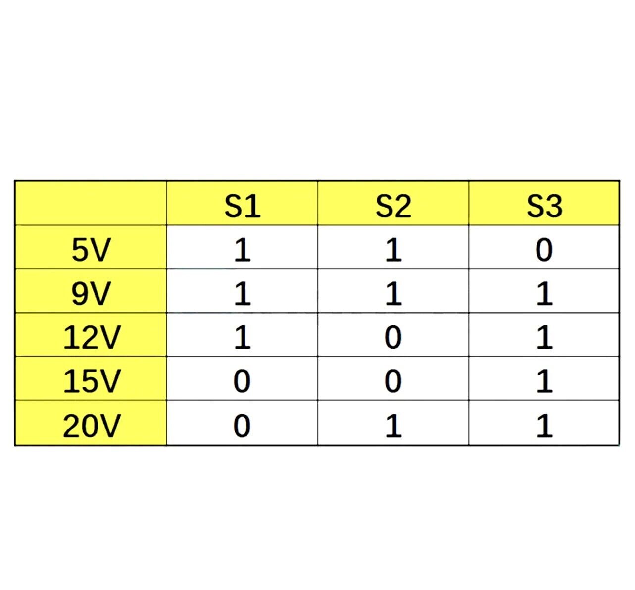 Voltage adjustment method: According to the table on the back of the board, adjust the DIP switch to control the voltage output
