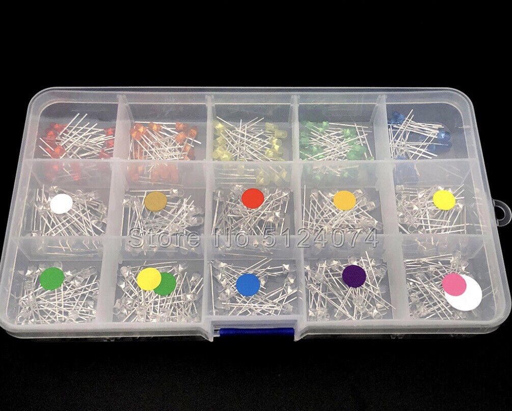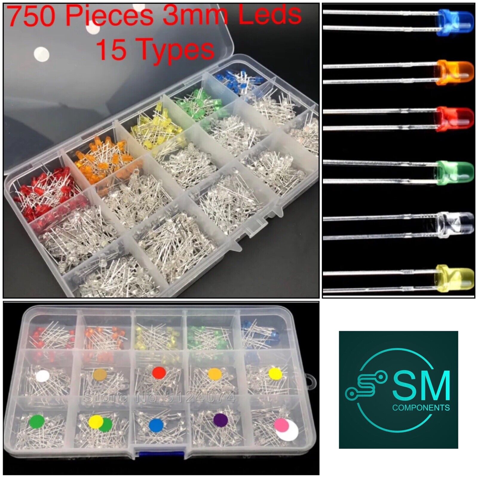 3mm LED 750pcs Light Emitting Diodes 15 Colour Red Green Blue Etc Assortment Kit