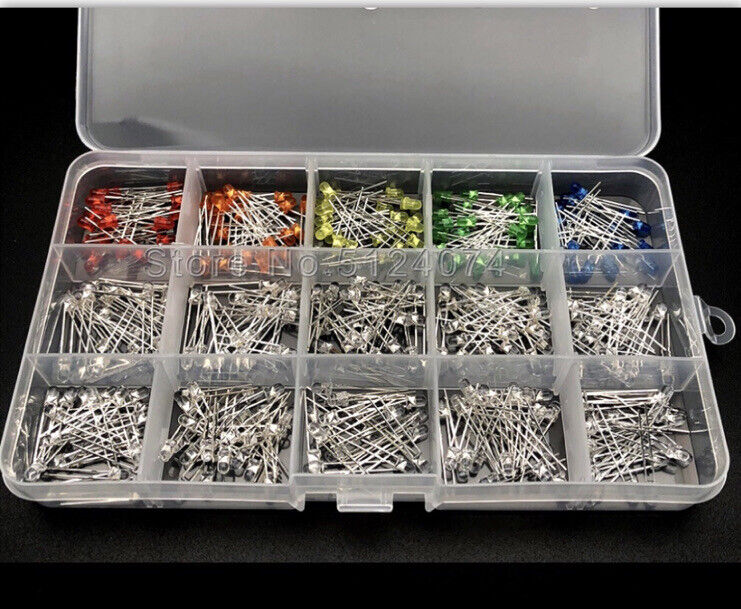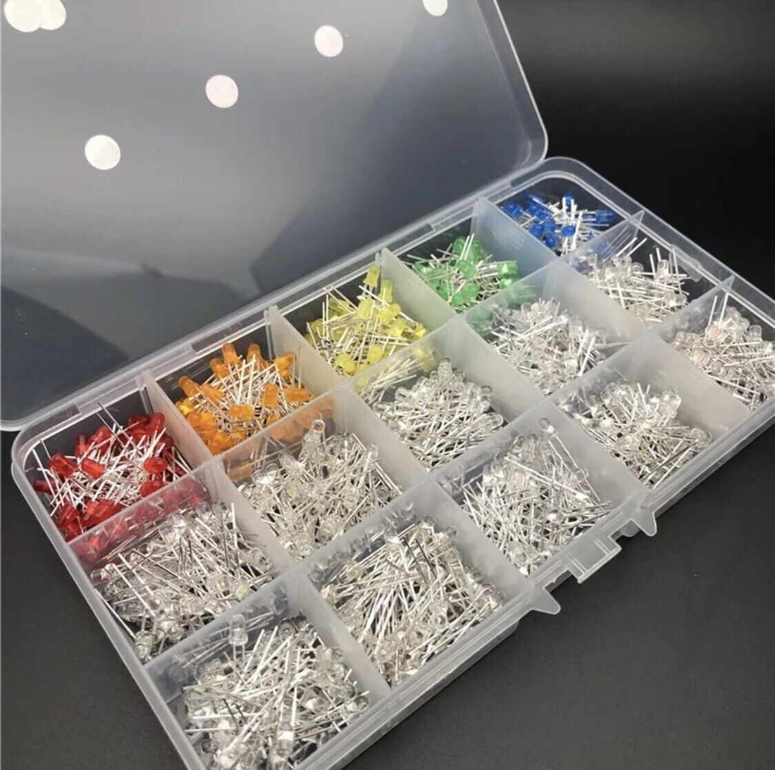 750pcs 15 Types 3mm LED Light Emitting Diodes Red Green Blue Etc Assortment Kit.
