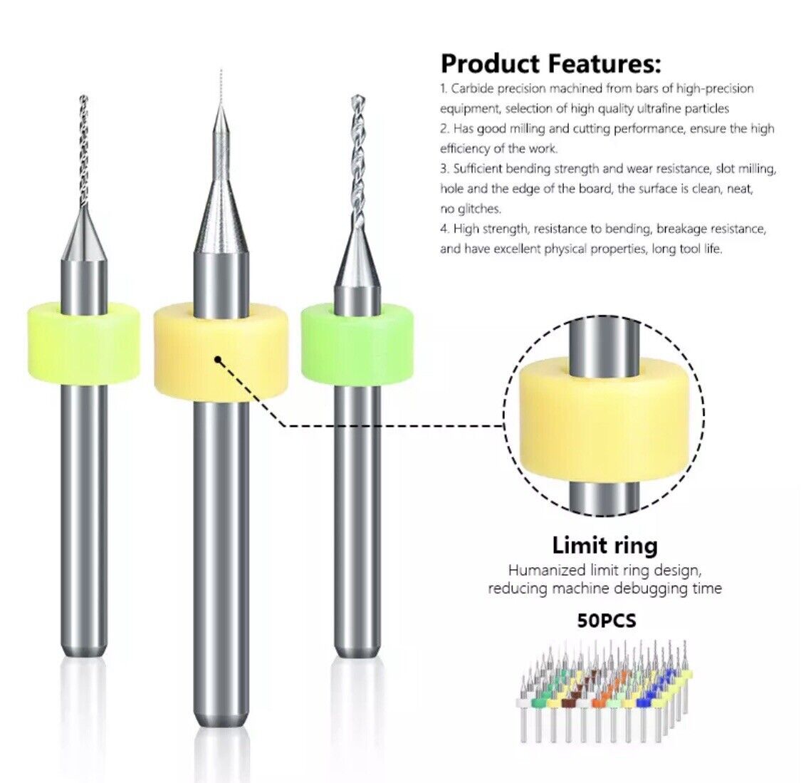 50 Pieces 0.3-1.2mm Tungsten Carbide Micro Drill Bits Set for DIY PCB. Condition is Brand New. Sent with Australia Post Standard Small Box.