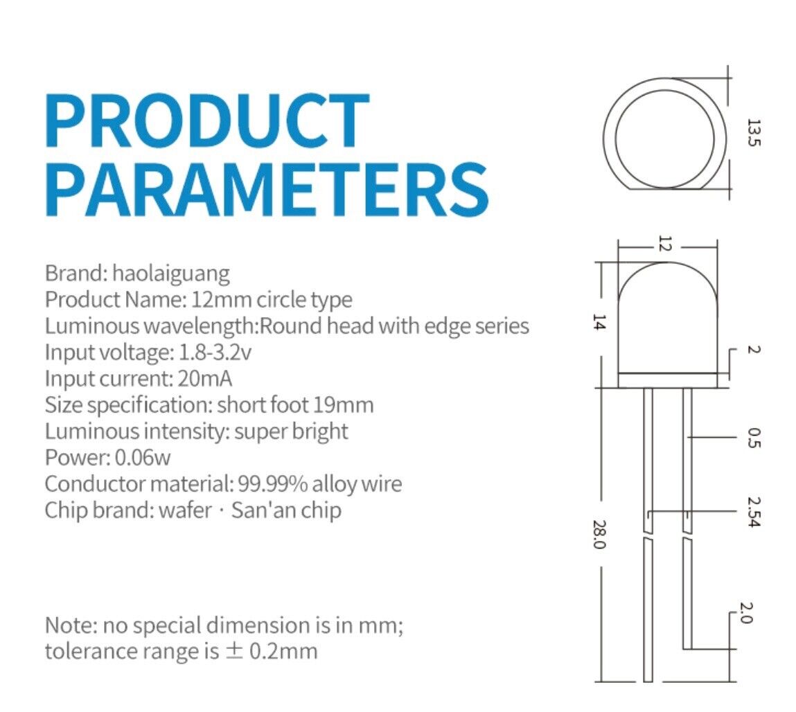 50pcs 12mm Red Diffused LED Light Emitting Diode Super Bright LED 625nm 0.06W