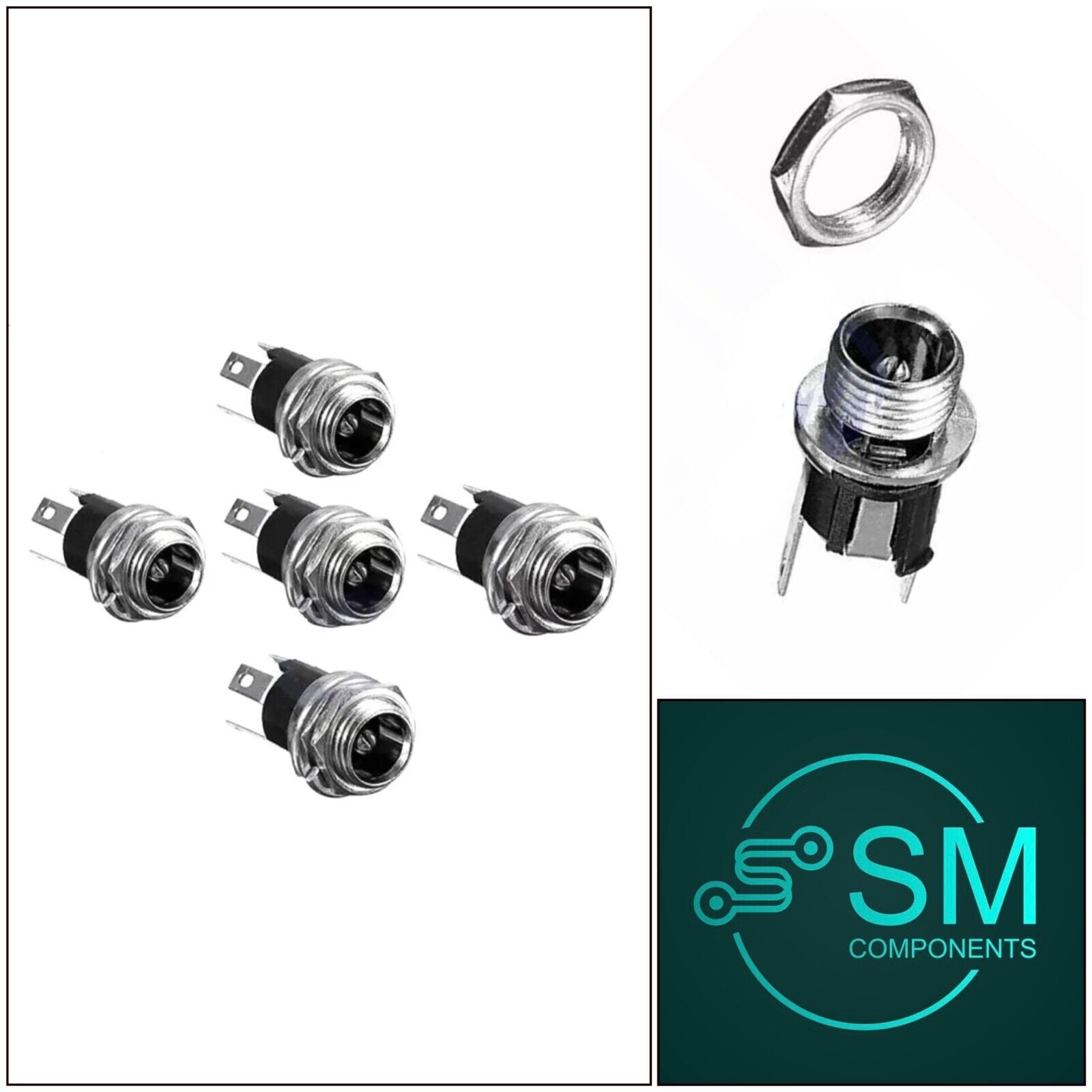 5PCS DC Power Supply Sockets 5.5 X 2.1mm Metal Face Female Panel Mount Connector