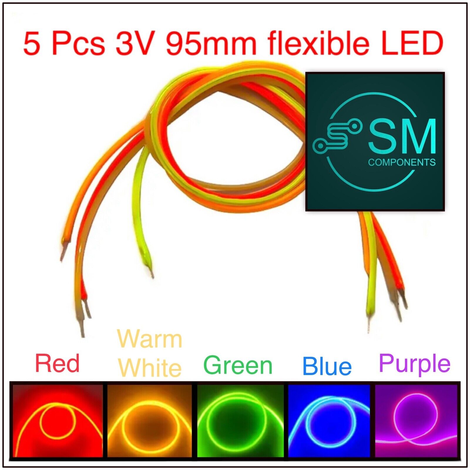 5PCS DC3V LED 95mm Super Flexible Silicone Light Emitting Filament All Colours
