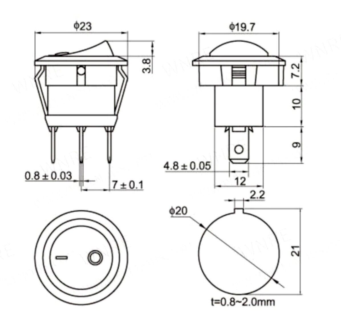Type: 2 Pins (3 Pins with LED), SPST: ON-OFF